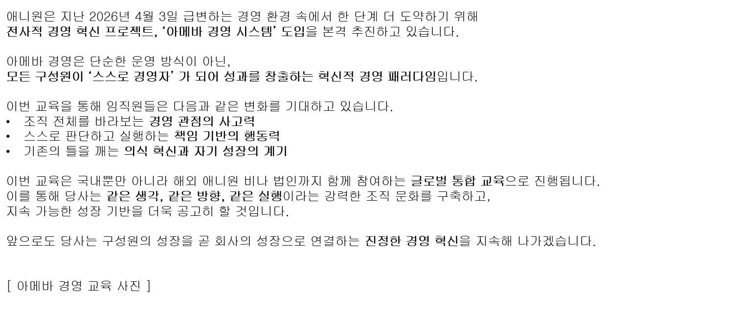 아메바 경영 필로소피 교육 전사 실시