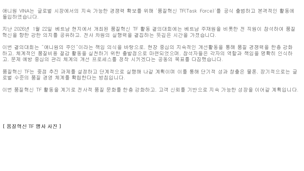 ANYONE VINA 품질혁신 TF 결의대회 개최