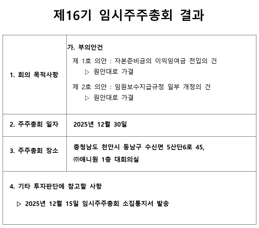 제 16기 임시주주총회 소집 통지('2025.12.30)